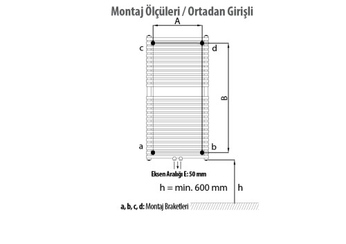 | BLU / Ortadan Bağlantı | Eksen Aralıkları E (mm) |