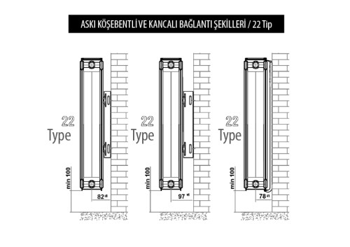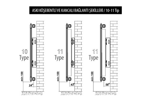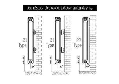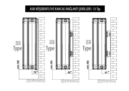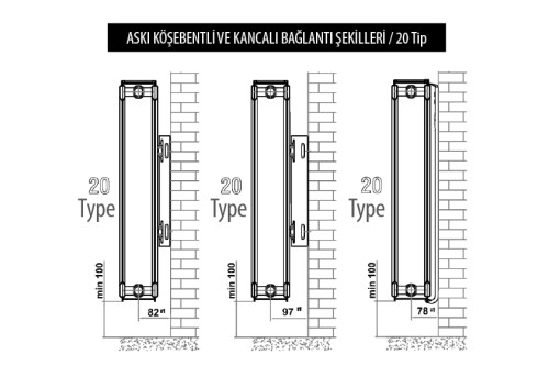 | Klasik ve Kompakt Radyatör | Montaj Ölçüleri | ||||